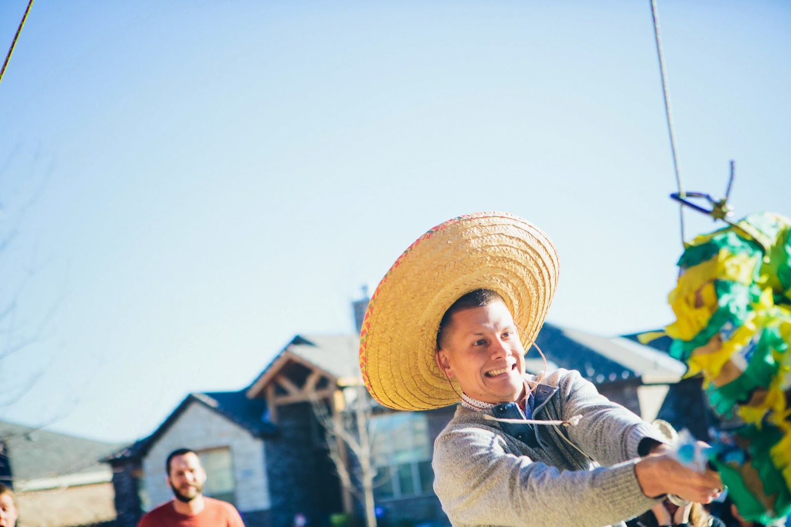 Although not holiday themed this gender reveal party for Tania and Brady is was one fun December party! You saw on Halloween that these precious friends of ours announced that they were having triplets. Yes triplets. So of course we had to throw an over the top gender reveal party! We decided on "The Three Amigos" as our theme (as apposed to "fetus fiesta") and of course had to use pinatas to find out the genders. Have you ever made a homemade pinata? One talent I thought I would never had. Just get ready to burn yourself with hot glue a couple hundred times. But worth it.